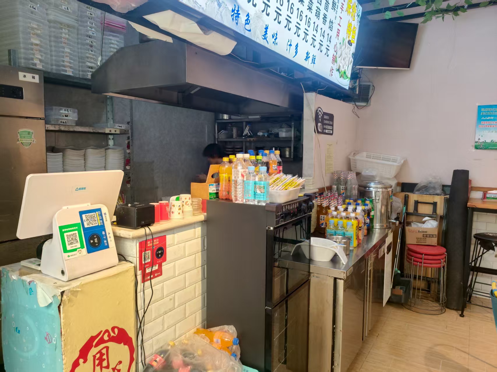 3、本店位于裕华区槐安路富强大街交口,步行街店铺,紧邻怀特商业广场,门头醒目。周边有周边有槐底村一区,槐底村二区,怀特第六小区,疾控中心生活小区,建设南大街热电宿舍,槐底新村生活小区等大型社区,怀特珠宝城,怀特商业广场,怀特风情街,怀特聚星城等多个商业区,河北地质大学石家庄青园街小学,市四十三中等多所学校,现在店面属于正常营业状态,设备齐全,可做多种快餐小吃等项目,店内环境好,格局方正,接手无需二次投入,有经验的老板可直接经营。