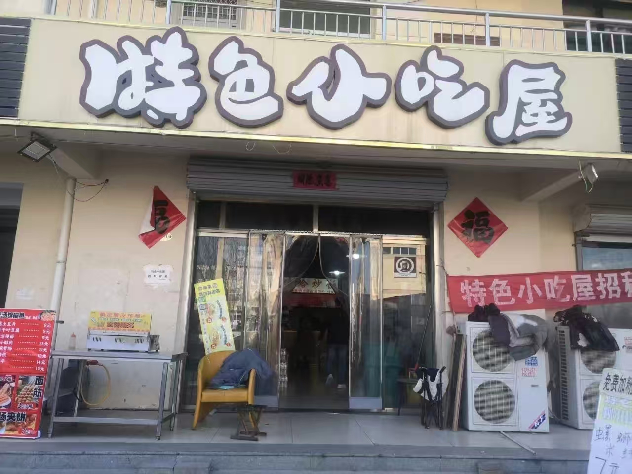 1、店铺位于灵寿县科技信息工程学院美食城档口
