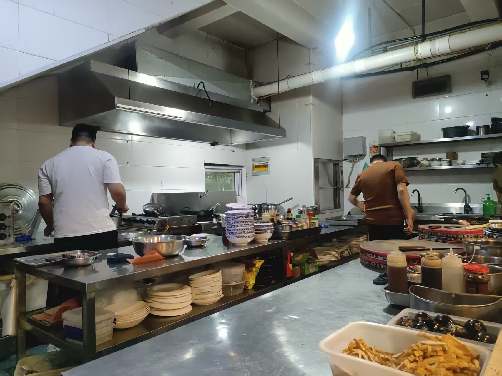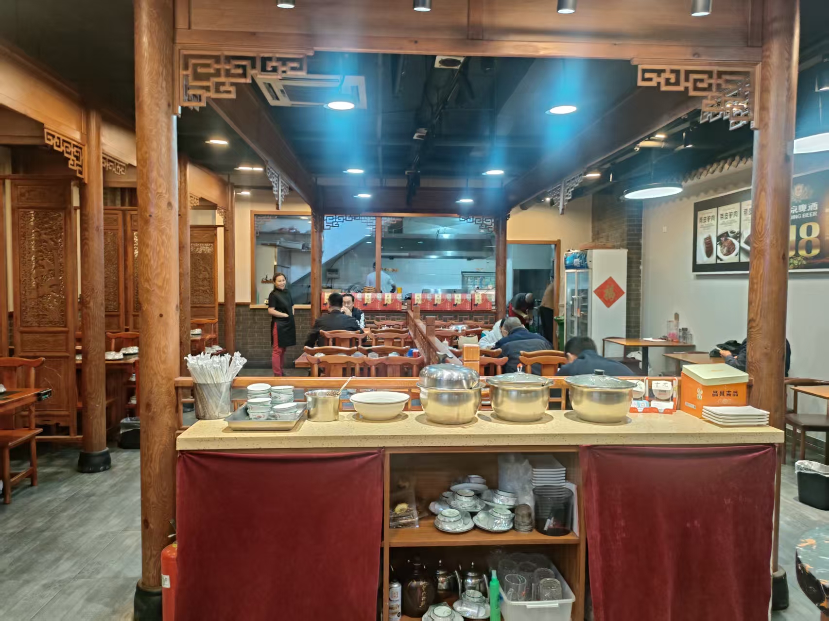 4、店面属于正常营业状态,店内精装修,环境好,设有5个包间,中央空调,传菜梯,明厨亮灶,餐饮设备齐全。可做烧烤,火锅,烤肉,炒菜等多种餐饮项目,同行接手无需二次投入,有经验的老板可直接经营。